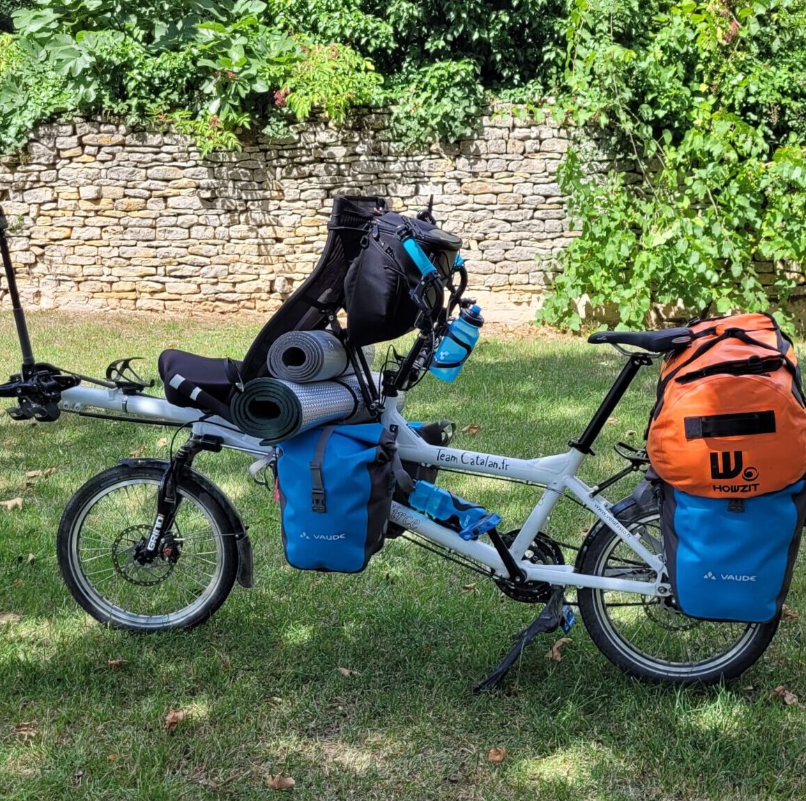 Une seule taille de roue (20 pouces), une interchangeabilité maximum (postes de pilotage adaptables de 1m40 à 2m, passagers de 1m à 1m80), une grosse capacité d’emport (8 sacoches, 2 sacs traversins, 2 sacs de guidon, 2 espaces sous les selles passagers).