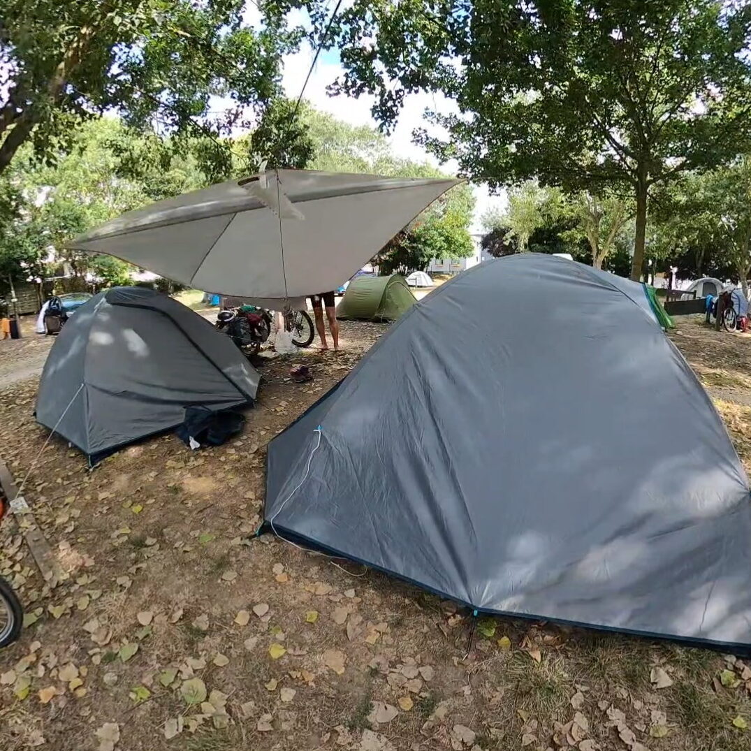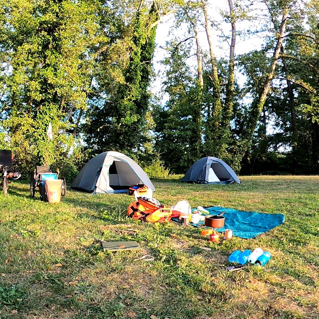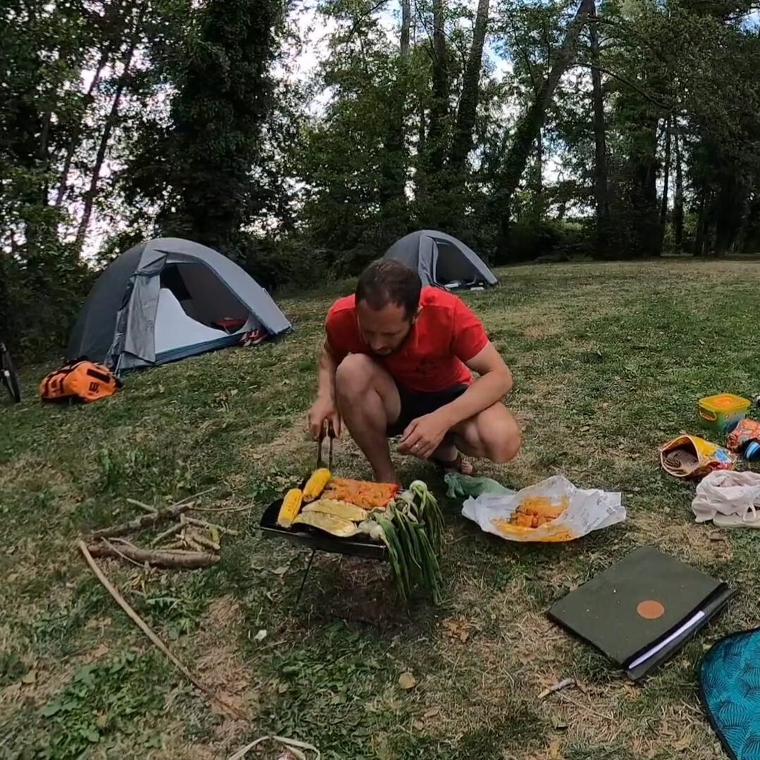 Tentes premiers prix, toile sans mat, équipement minimum, mais BBQ obligatoire 😁…